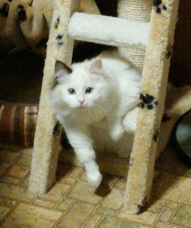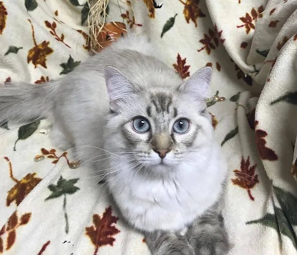 Paisley is a big, beautiful seal cream tortie bicolor out of our very own Kimber. She has the most amazing blue eyes and produces some of our most stunning kittens. She is a big and as fluffy as they come!